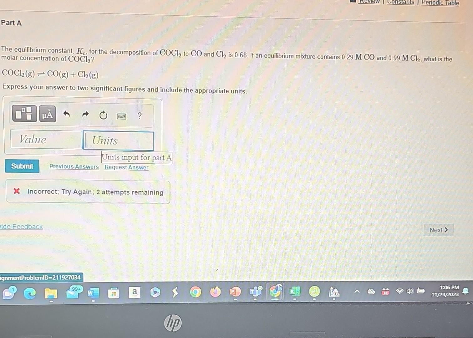 Solved Part A COC₂ (g)=CO(g) Cl₂(g) Express your answer to Chegg com