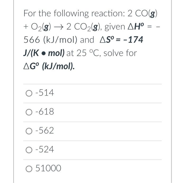 Solved For the following reaction: 2 CO(g) O₂(g) → 2 Chegg com