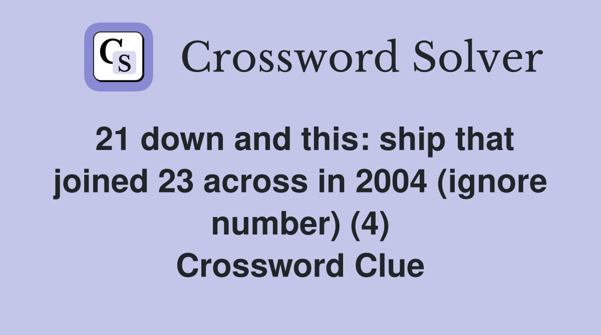 21 down and this: ship that joined 23 across in 2004 (ignore number) (4