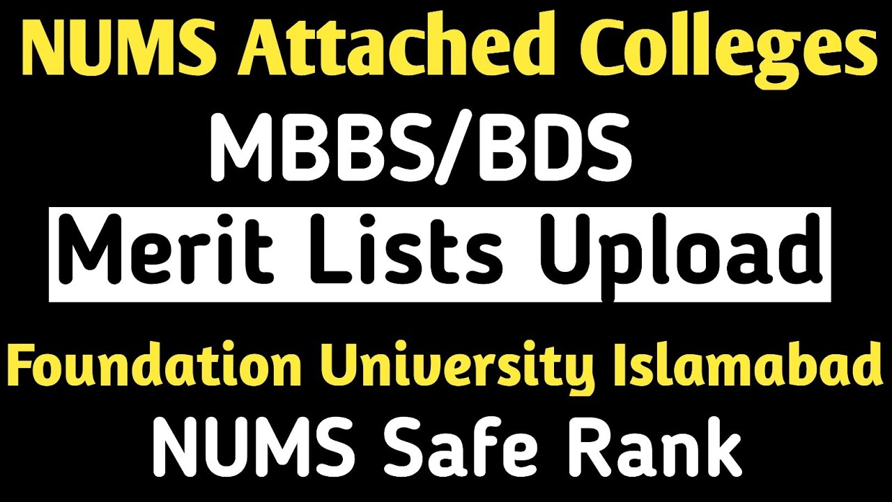 NUMS ATTACHED MEDICAL COLLEGES MERIT LISTS:FOUNDATION UNIVERSITY MERIT