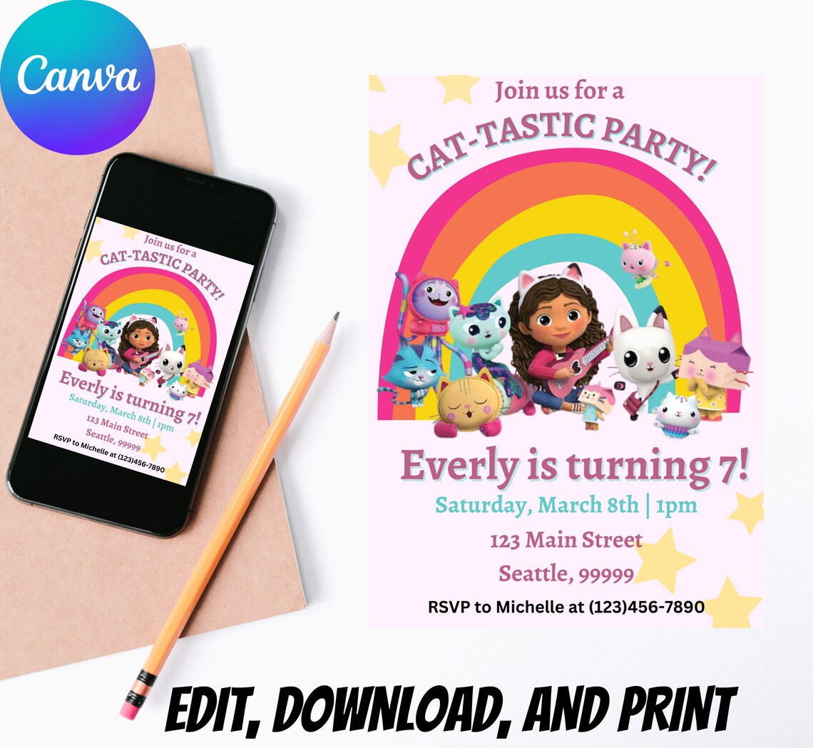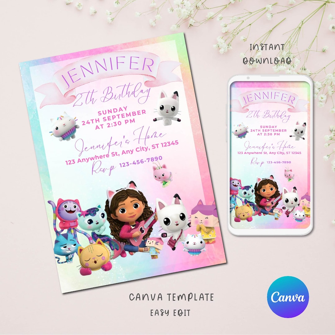 Editable Gabby s Dollhouse Birthday Invitation Template Etsy