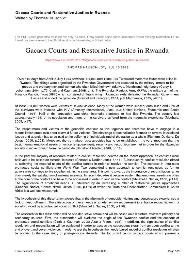 extended essay gacaca courts Rwanda