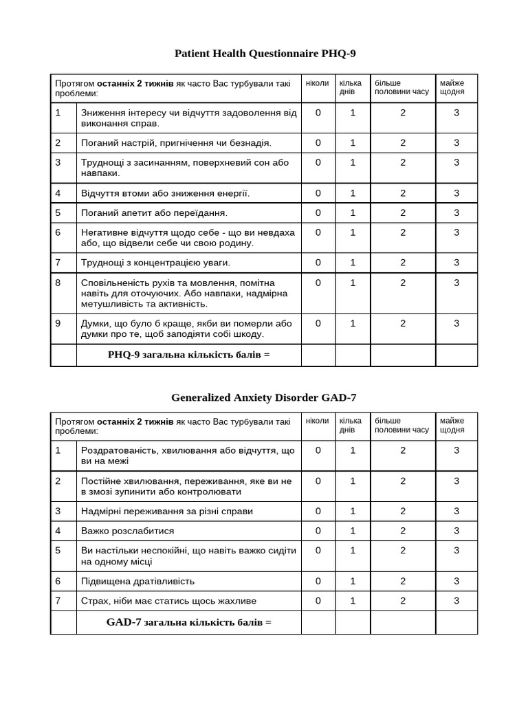 Patient Health Questionnaire and Generalized Anxiety Disorder (Phq 9t