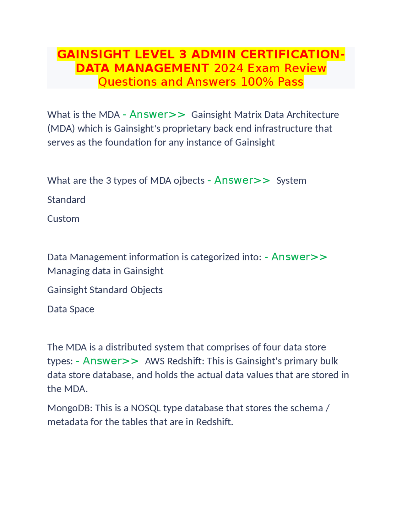 GAINSIGHT LEVEL 3 ADMIN CERTIFICATION DATA MANAGEMENT 2024 Exam Review
