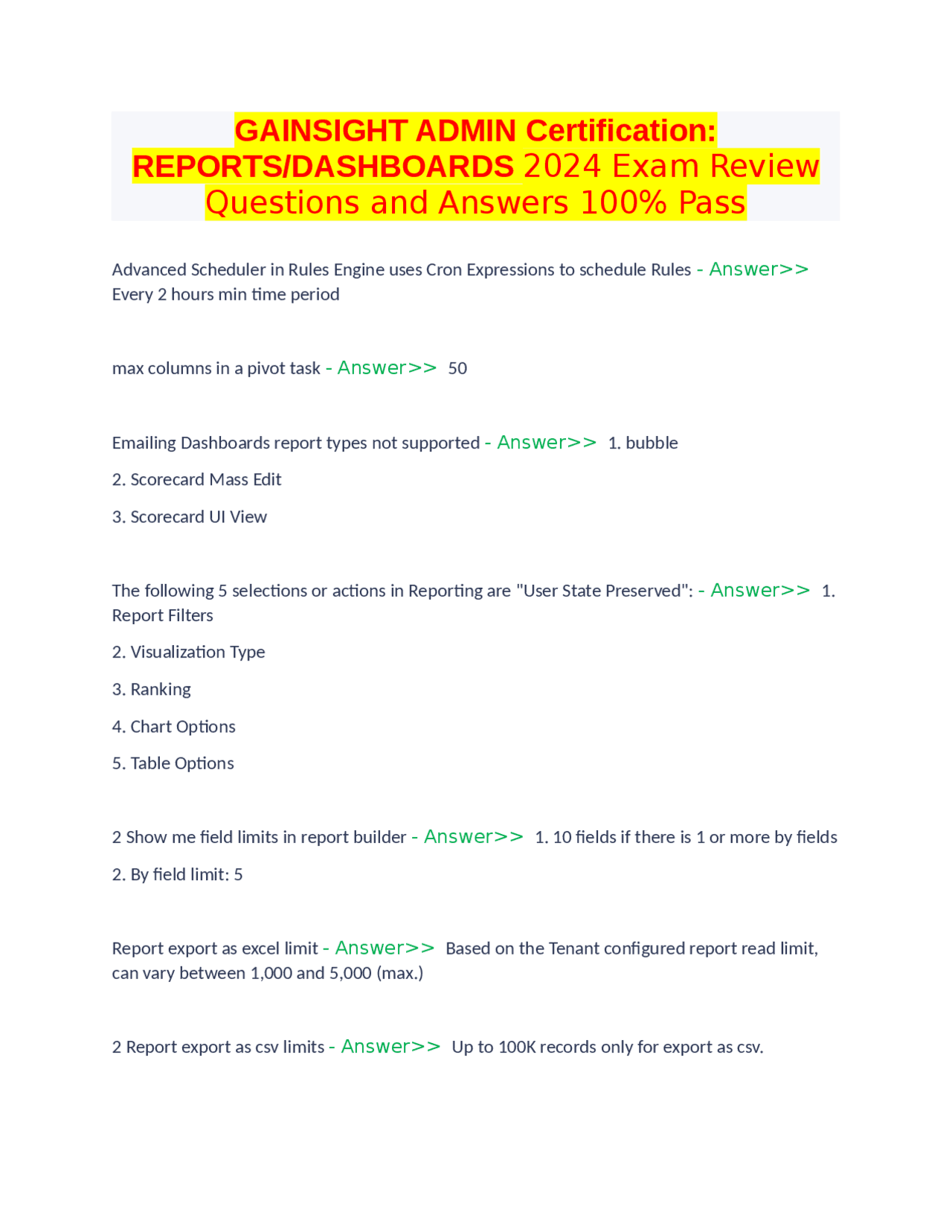 GAINSIGHT ADMIN Certification: REPORTS / DASHBOARDS 2024 Exam Review