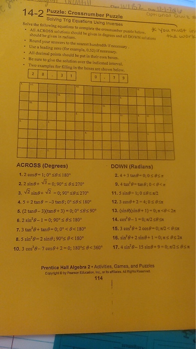 Solved 14 2 Puzzle: Crossnumber Puzzle Solving Trig Chegg com
