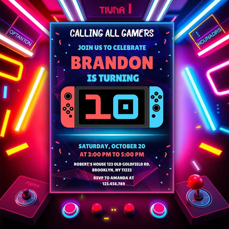 Video Game Birthday Invitation Template Switch Party Editable Invite