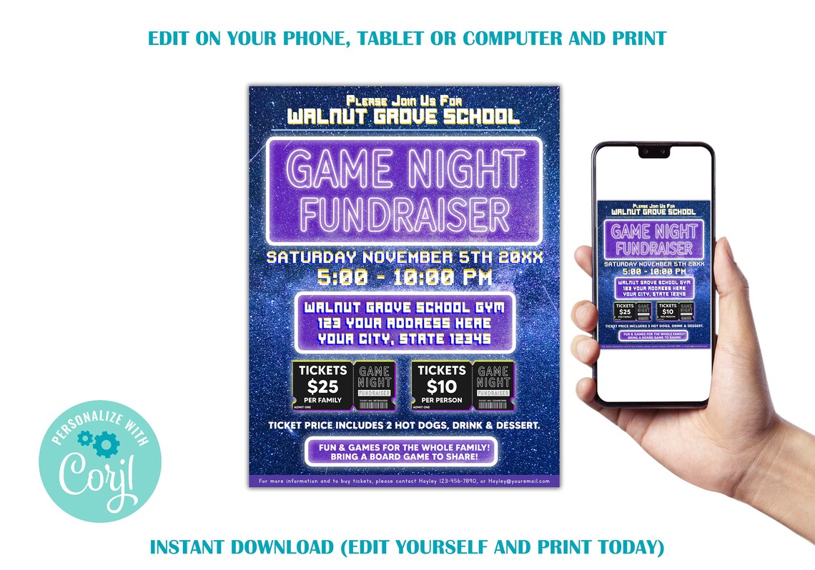 GAME NIGHT Template for Flyers Social Media Post Etc Completely