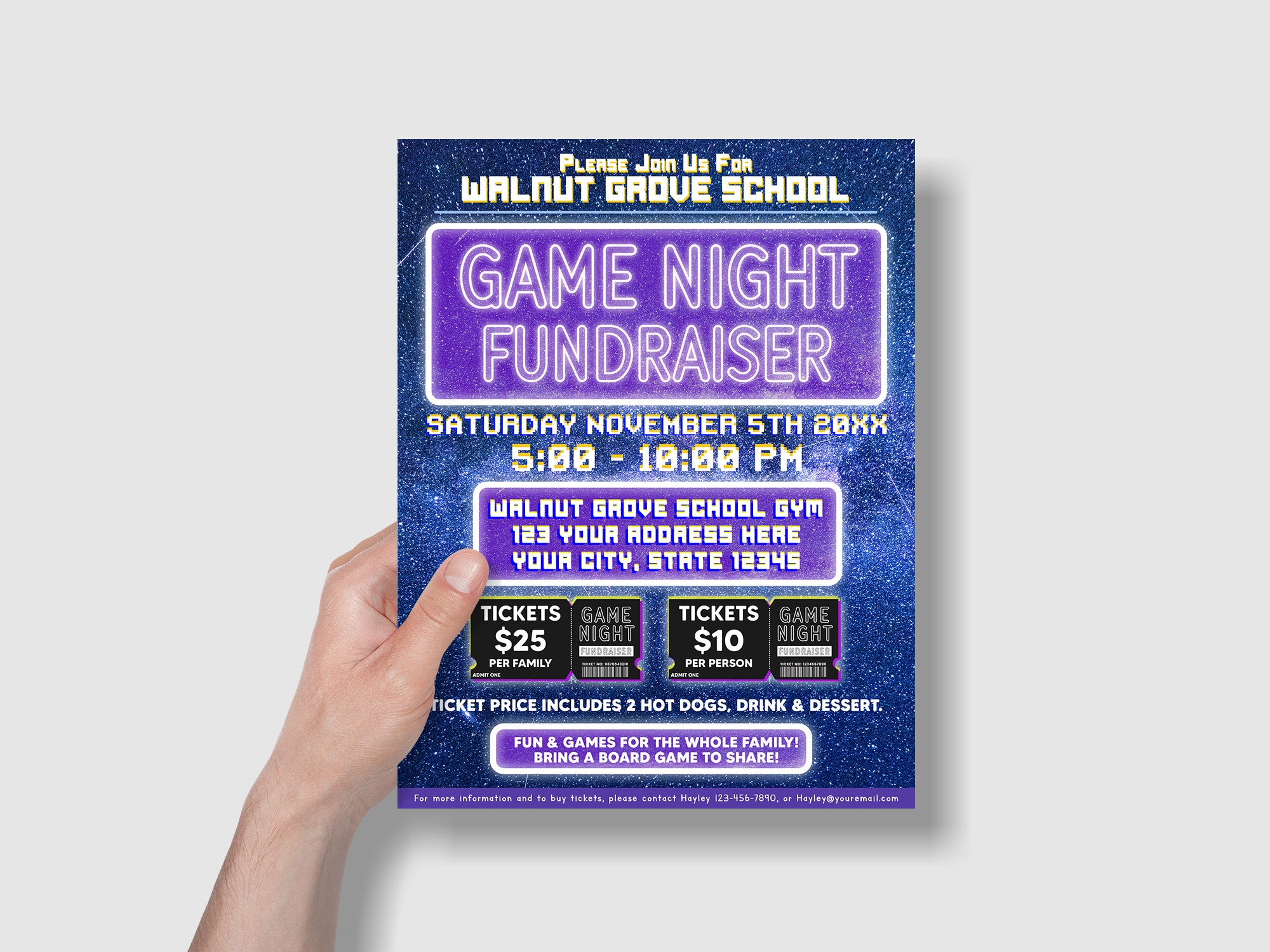 Customizable Game Night Flyer Template DIY School Family Game Night