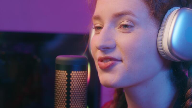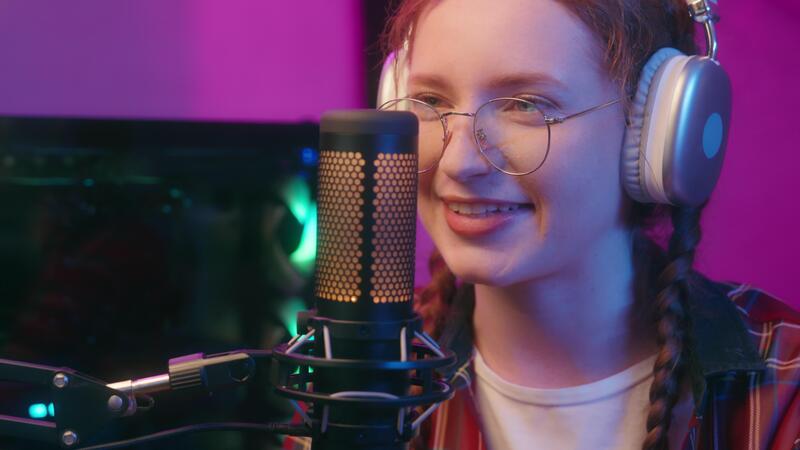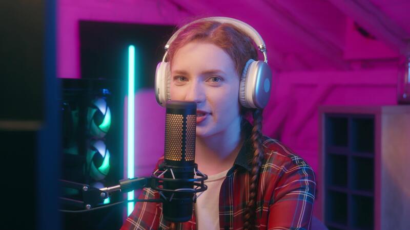 Gen z girl female teen Caucasian woman blogger streamer radio host