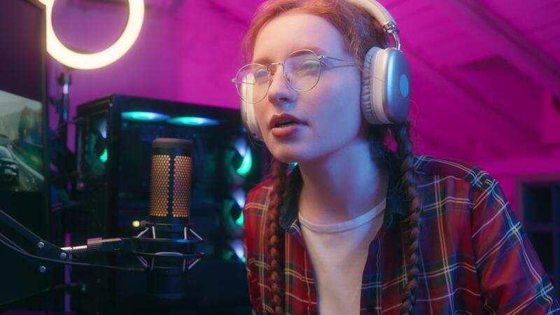 Cyber sport gamer teen girl female player radio host streamer
