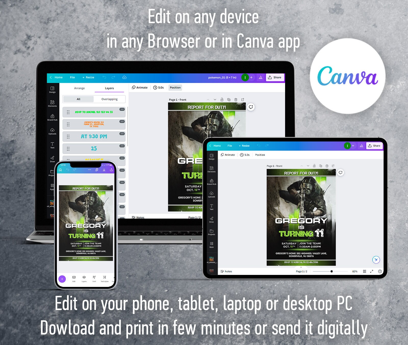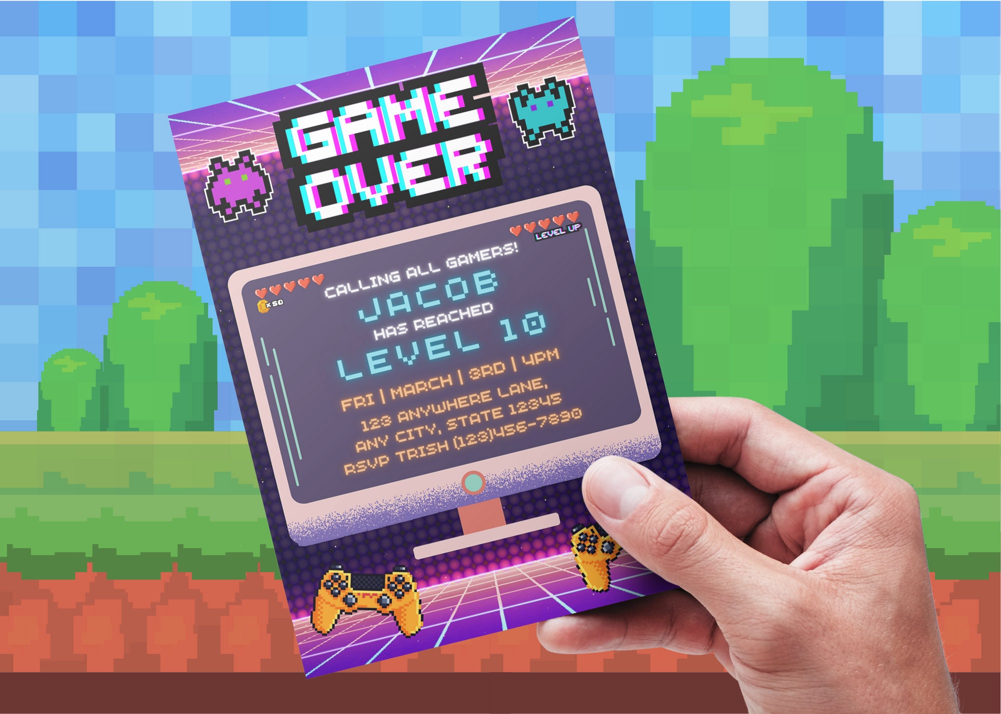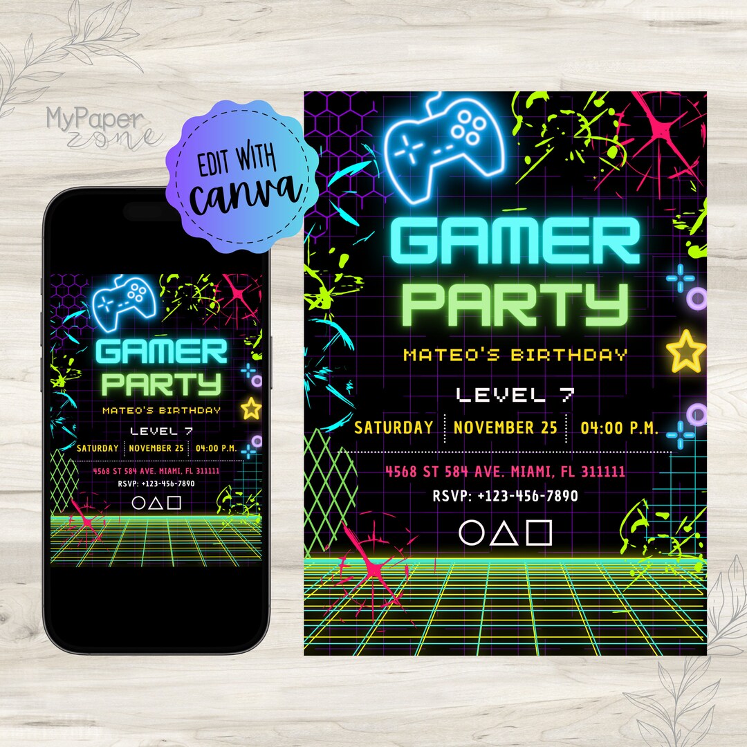 Editable Gamer Birthday Invitation Gaming Invite 5x7 Canva Template