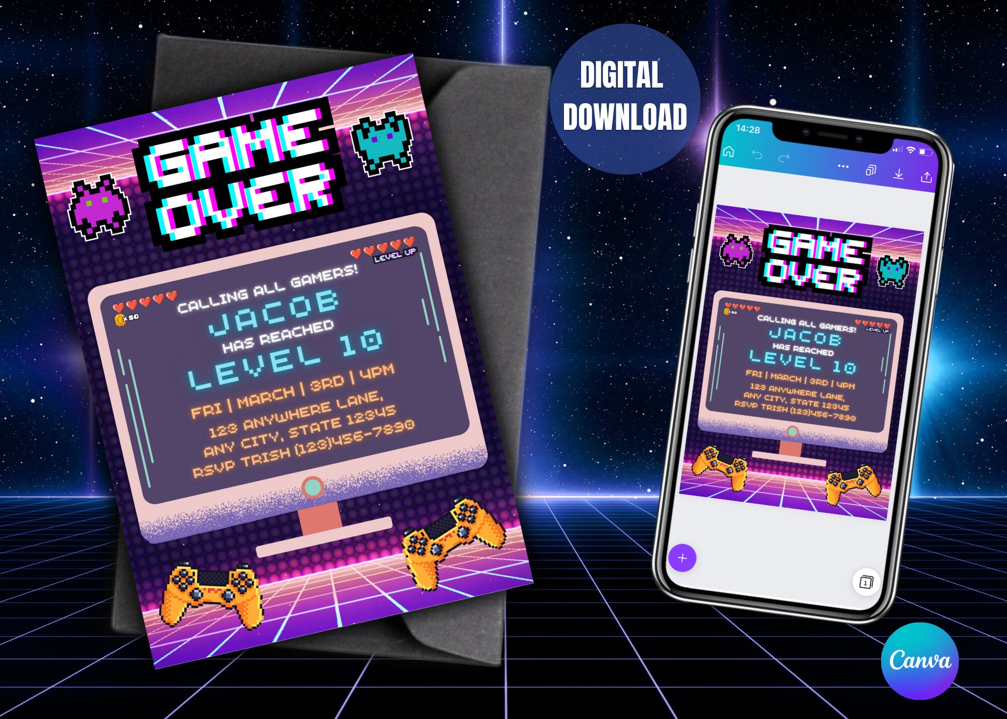 Gamer Birthday Party Invitation Digital Template Gaming Party Etsy