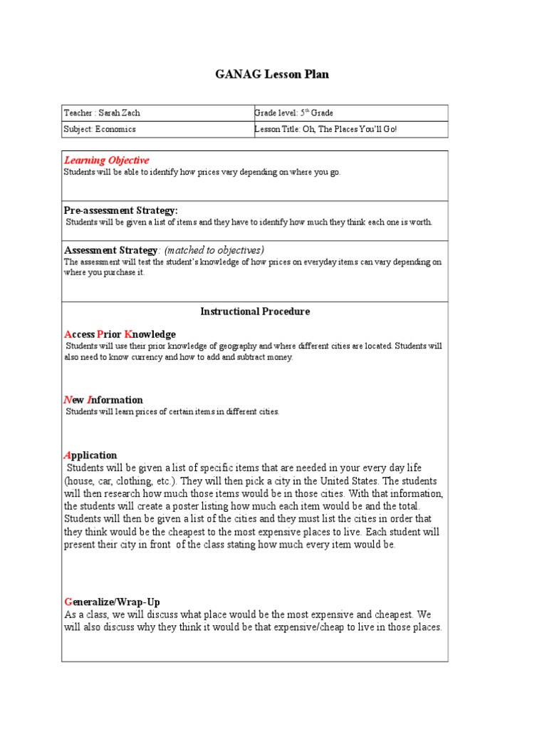 GANAG LESSON PLAN TEMPLATE by Orrin Curtis Teachers Pay Teachers