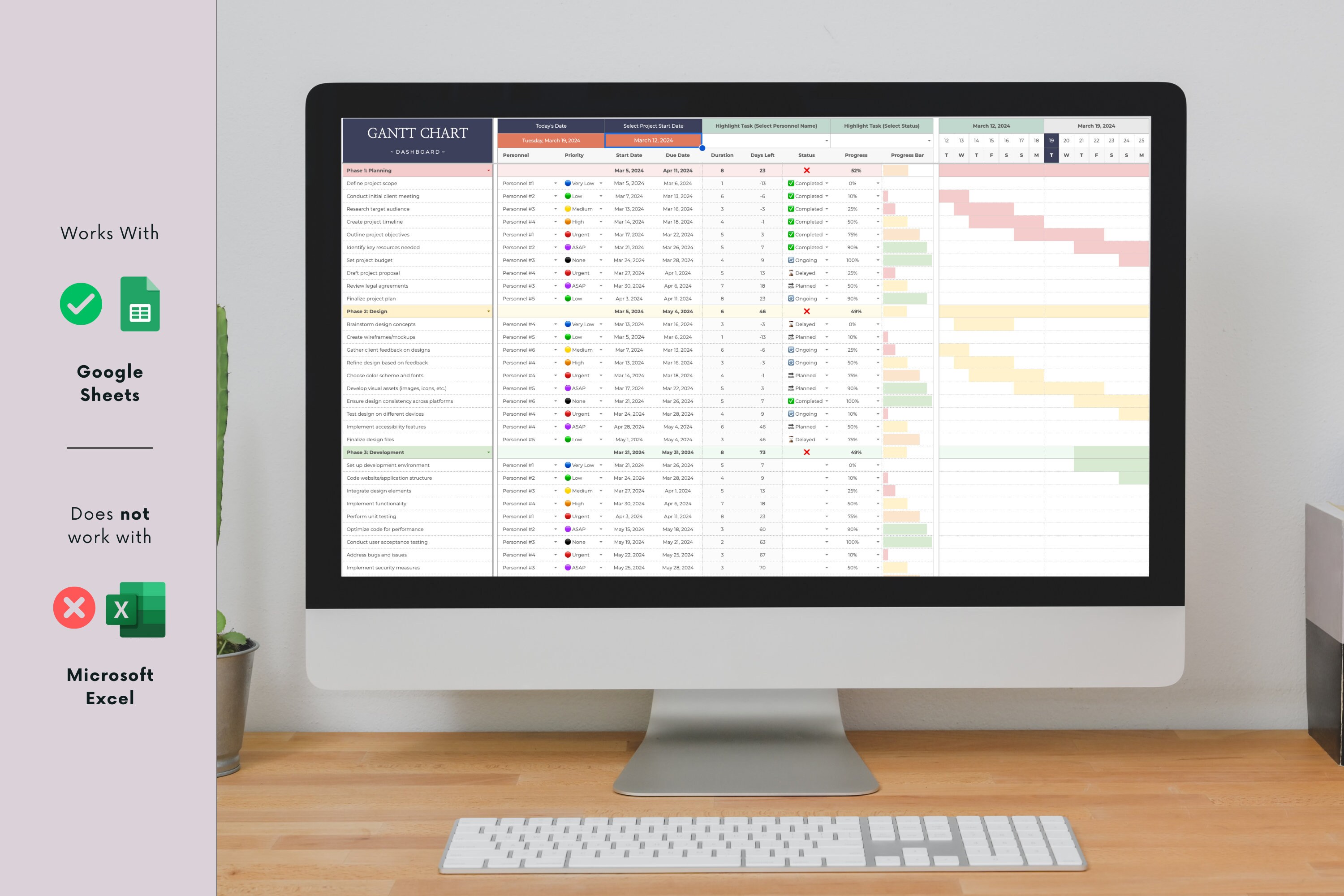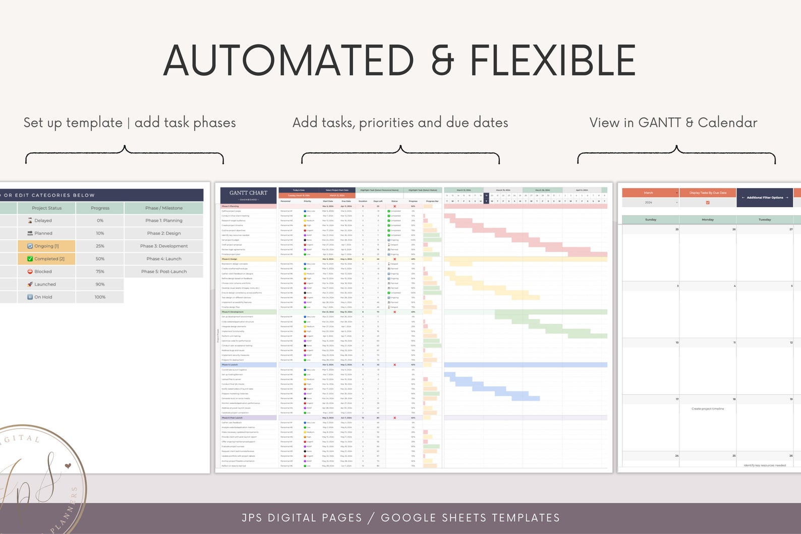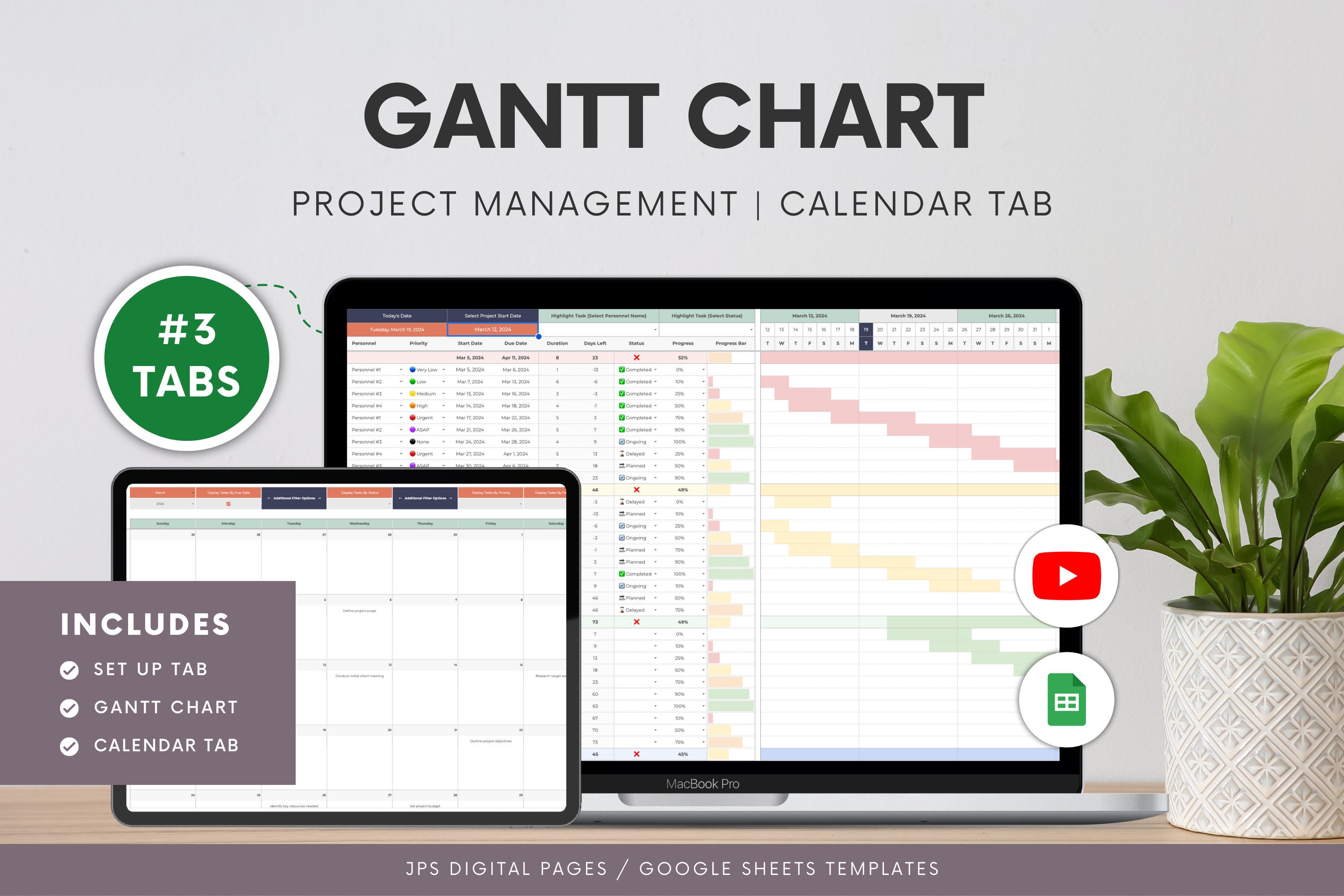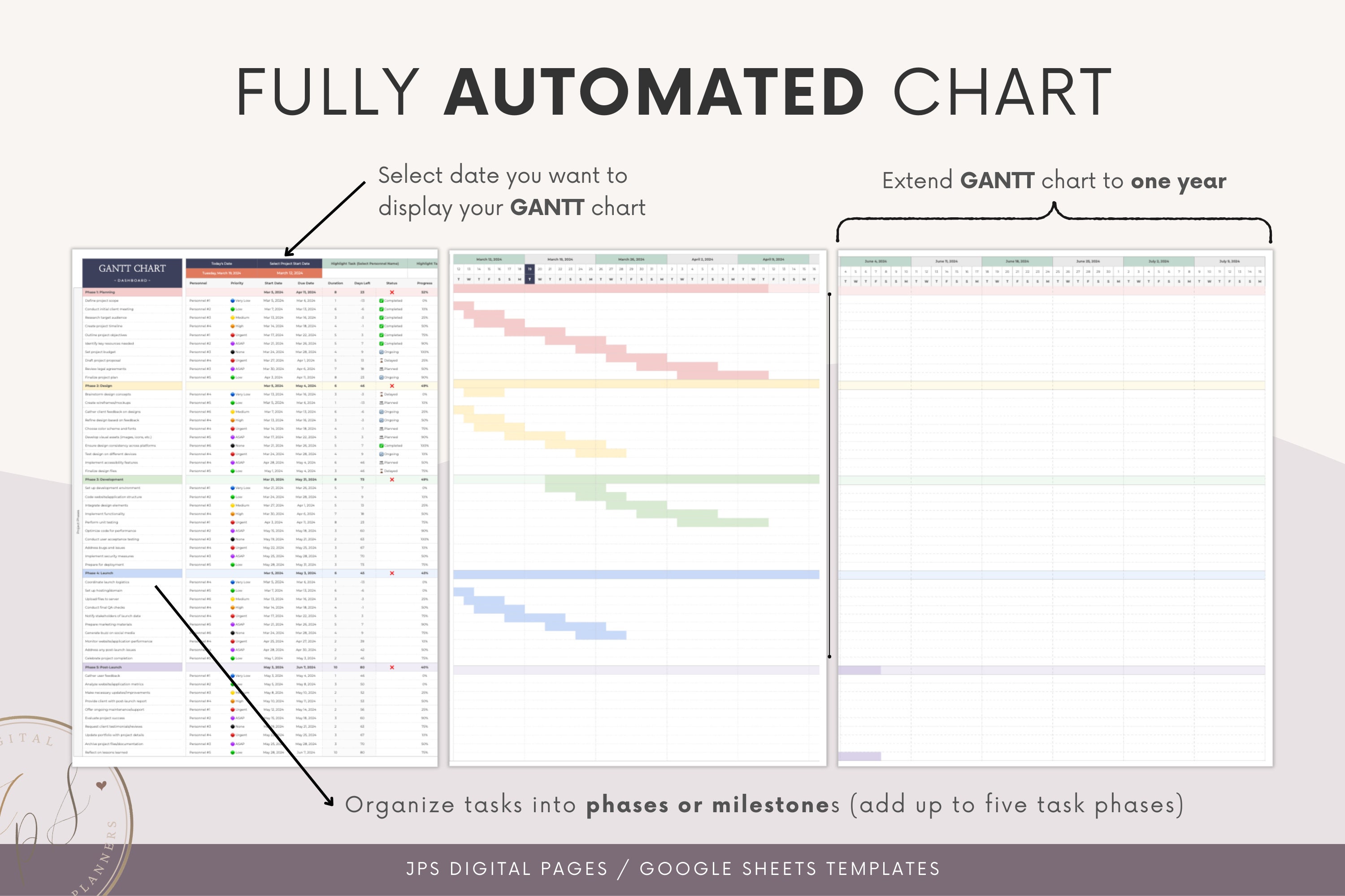 Gantt Chart Google Sheets Template: Project Task Tracker (digital