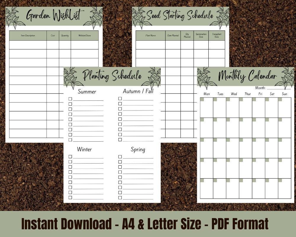 Garden Planner Printable Gardening Journal Planting Calendar Seed