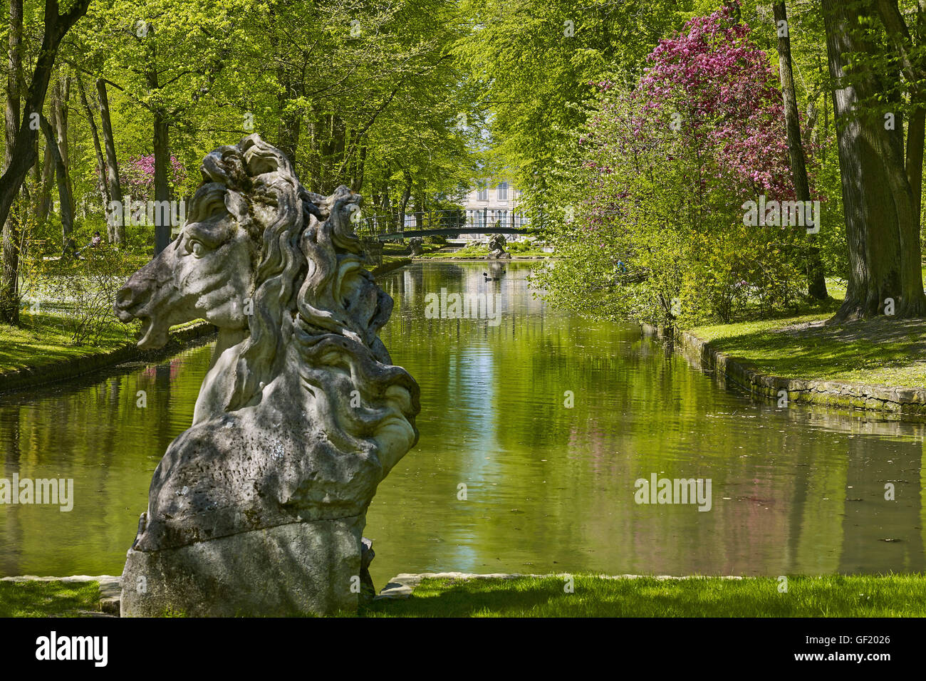 Court Garden with canal and sculpture in Bayreuth Germany Stock Photo