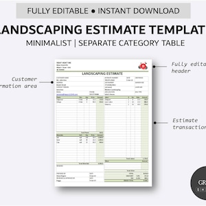 Printable Landscaping Estimate Template for Excel and Google Sheets