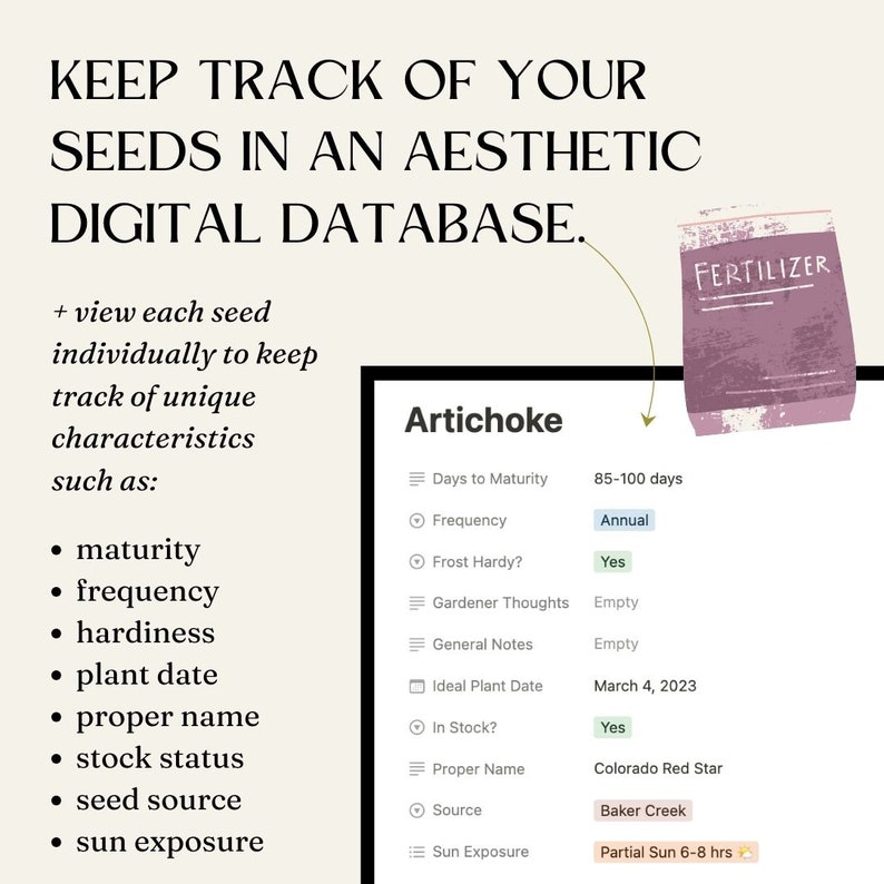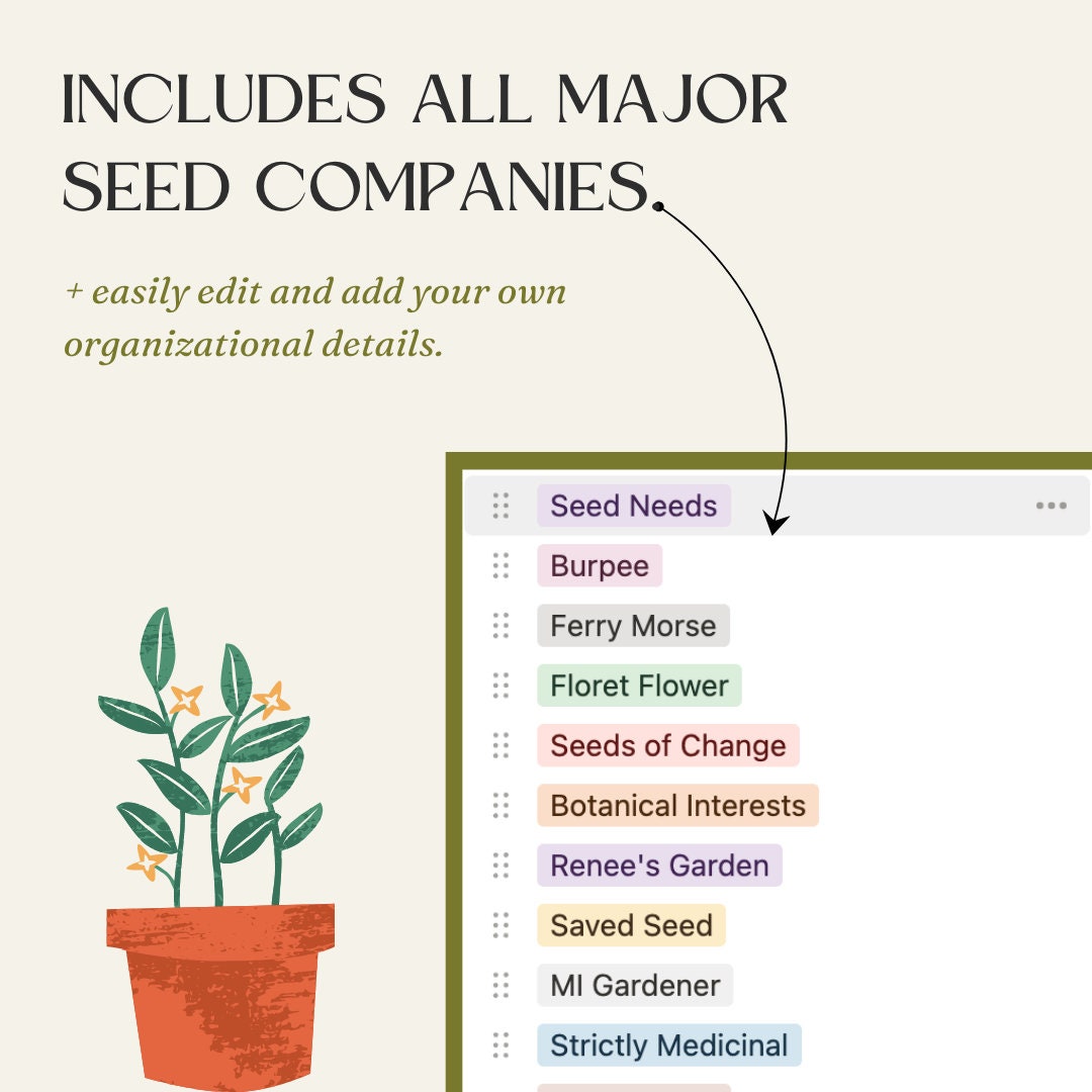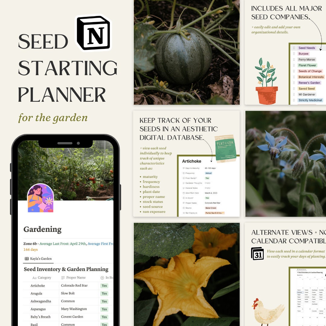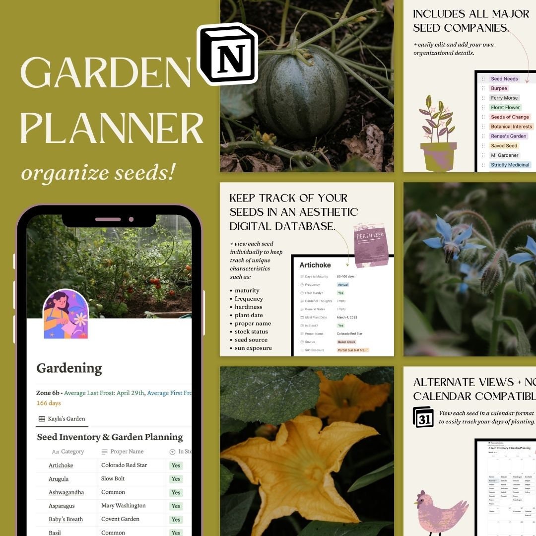 Seed and Garden Planner Organizer Template for Notion Gardening