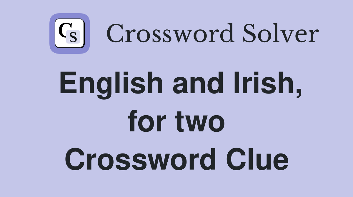English and Irish for two Crossword Clue Answers Crossword Solver