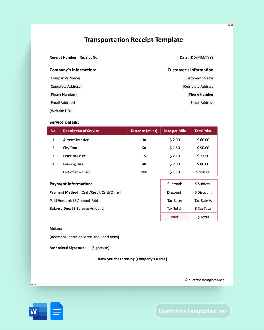 Gas Station Receipt Template Word Google Docs