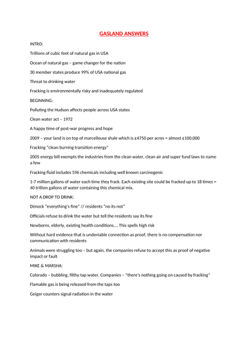 Gasland Fracking Documentary worksheet with answers Teaching Resources