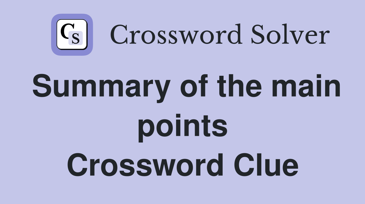 Summary of the main points Crossword Clue Answers Crossword Solver