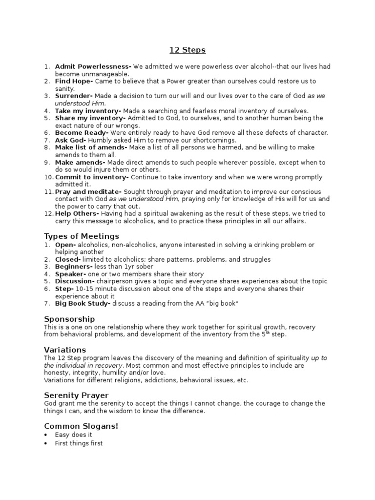 Printable 12 Steps And 12 Traditions