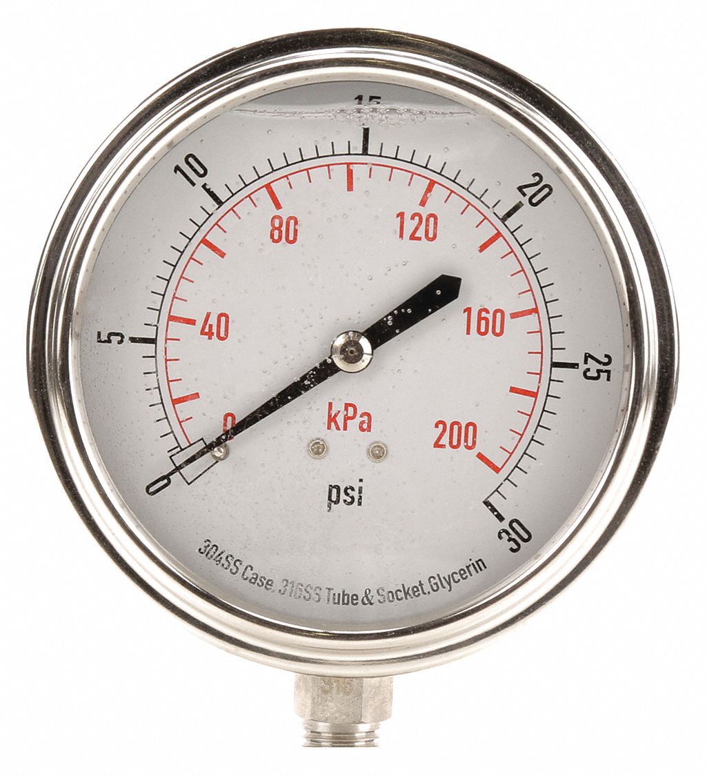 GRAINGER APPROVED Commercial Pressure Gauge: 0 to 30 psi ( 0 to 200 kPa