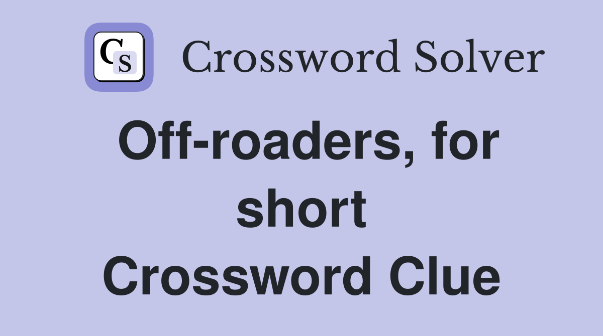 Off roaders for short Crossword Clue Answers Crossword Solver
