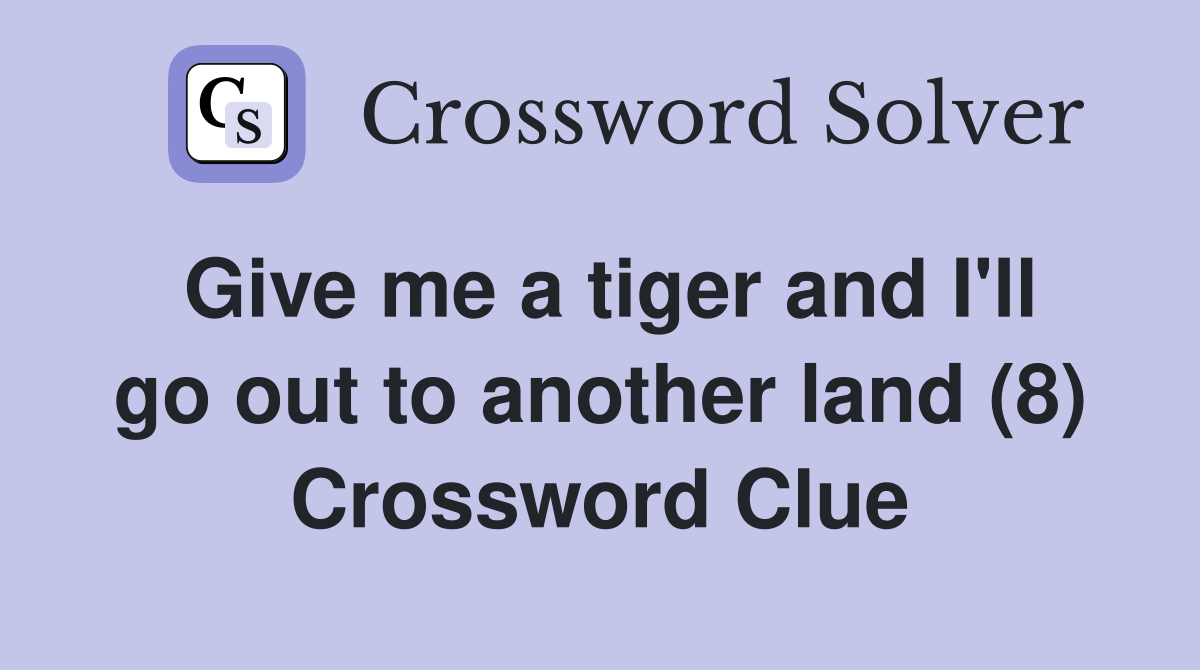 Give me a tiger and I ll go out to another land (8) Crossword Clue