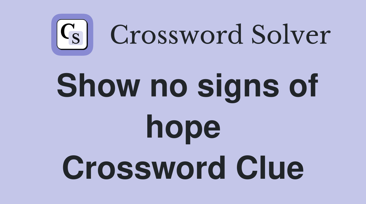 Show no signs of hope Crossword Clue Answers Crossword Solver