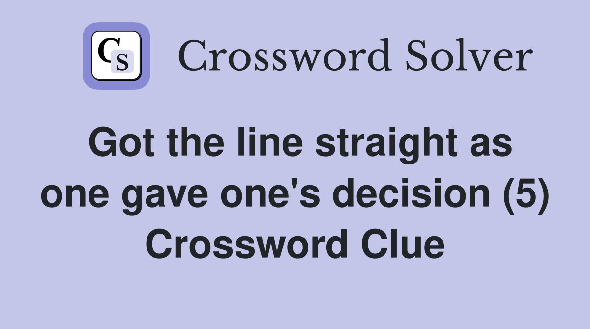 Got the line straight as one gave one #39 s decision (5) Crossword Clue