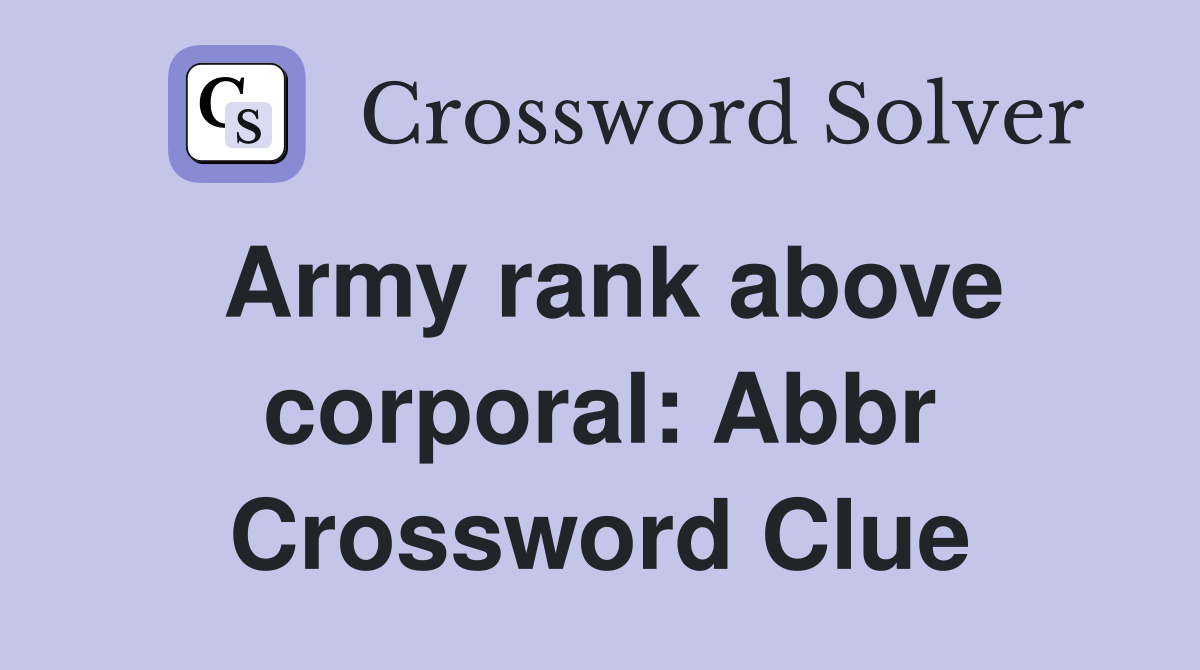 Army rank above corporal: Abbr Crossword Clue Answers Crossword Solver