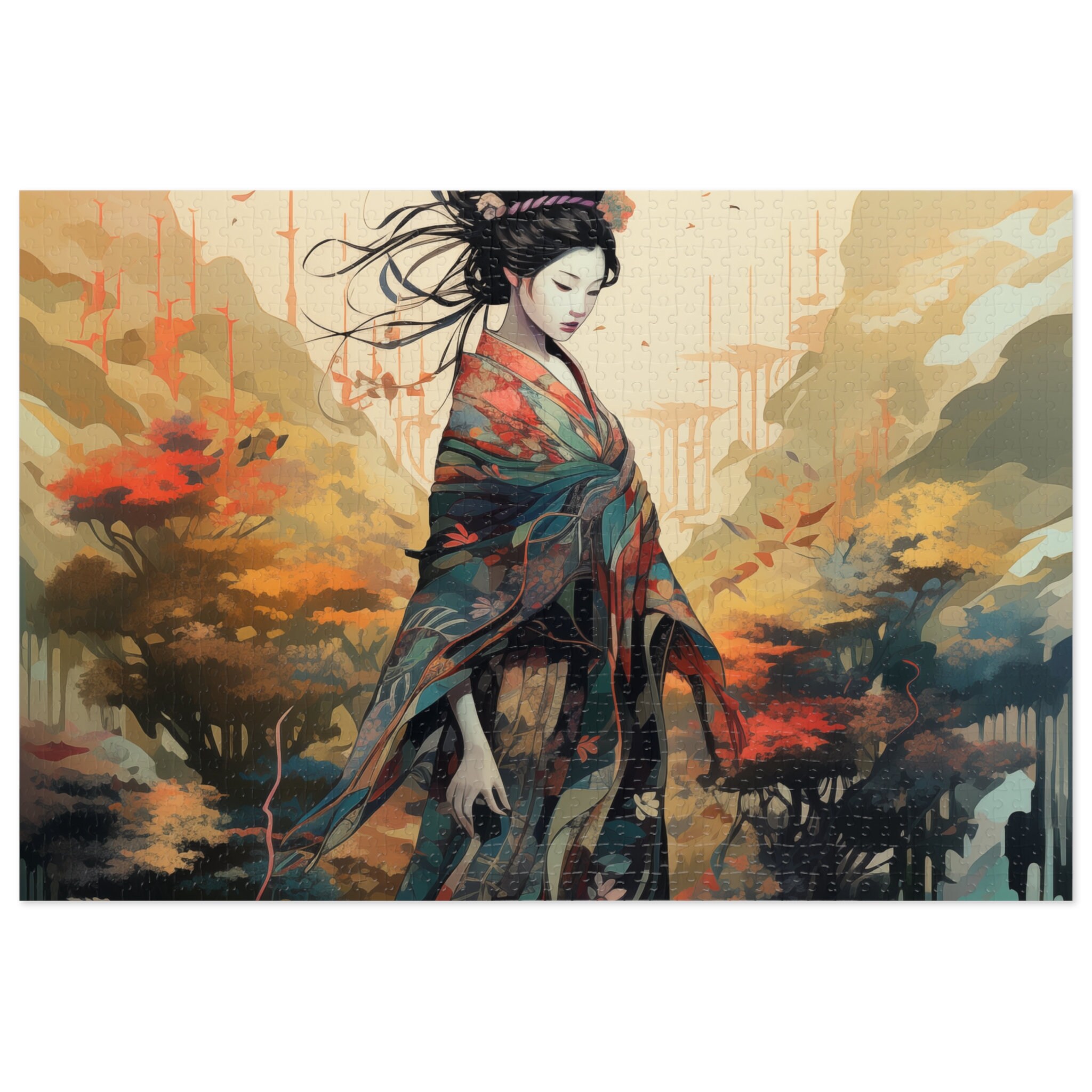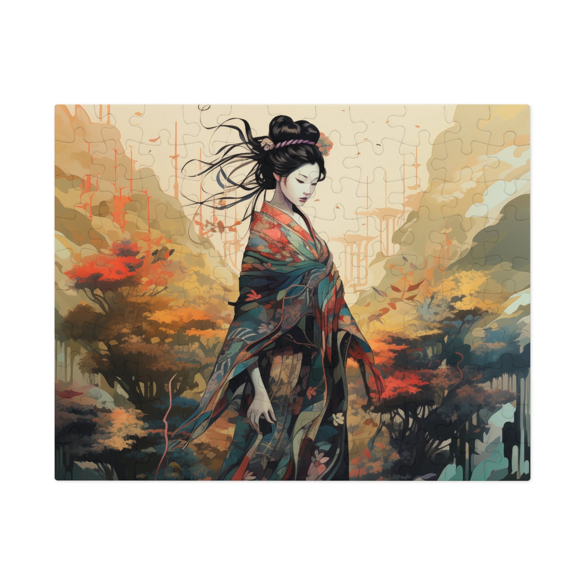 Japanese Geisha Art Puzzle Beautiful Autumn Landscape Jigsaw Cultural