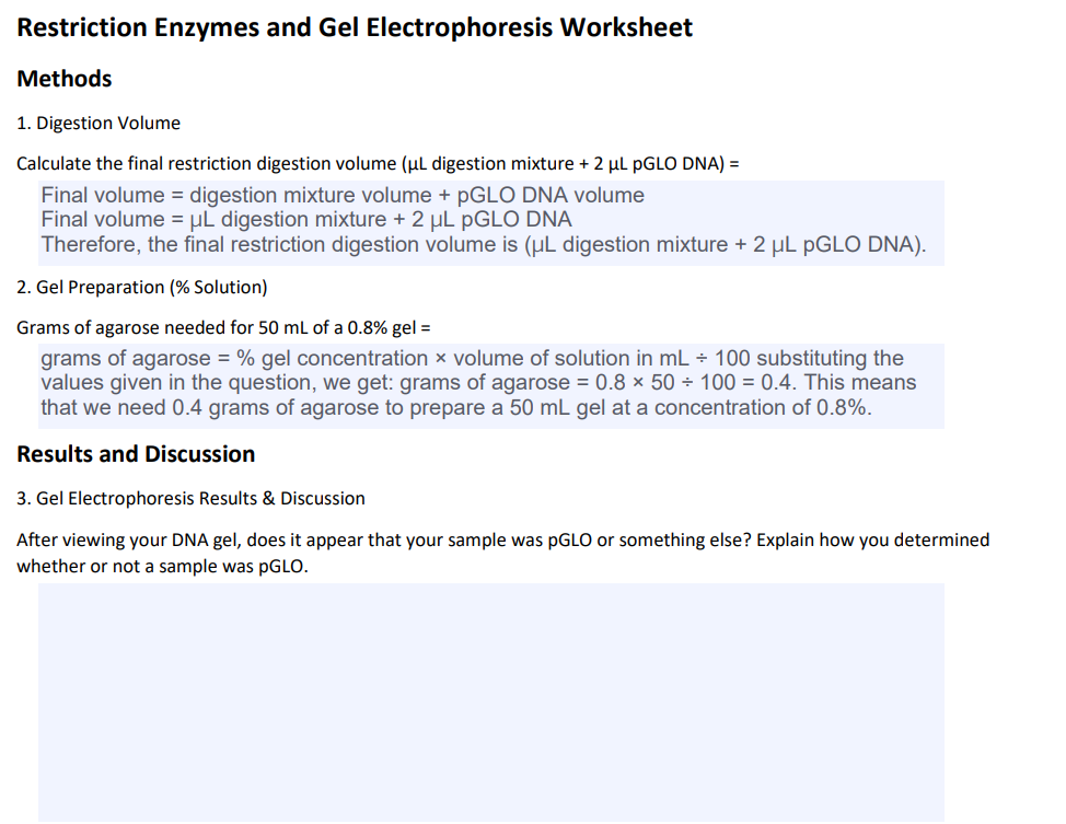 Restriction Enzymes and Gel Electrophoresis Worksheet Chegg com