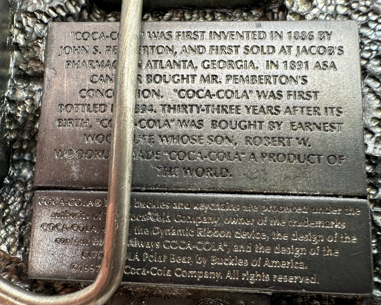 Coca Cola Belt Buckle W/Certificate Of Authenticity Gem