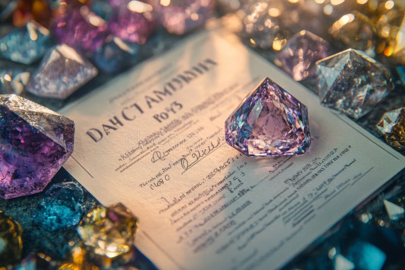 A Stunning Array of Colorful Gemstones Rests on a Certificate of