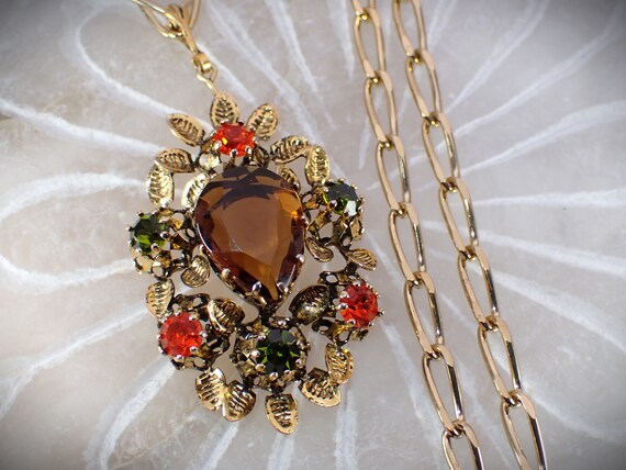 Victorian Style Gold Tone Floral Design Orange Gree Gem