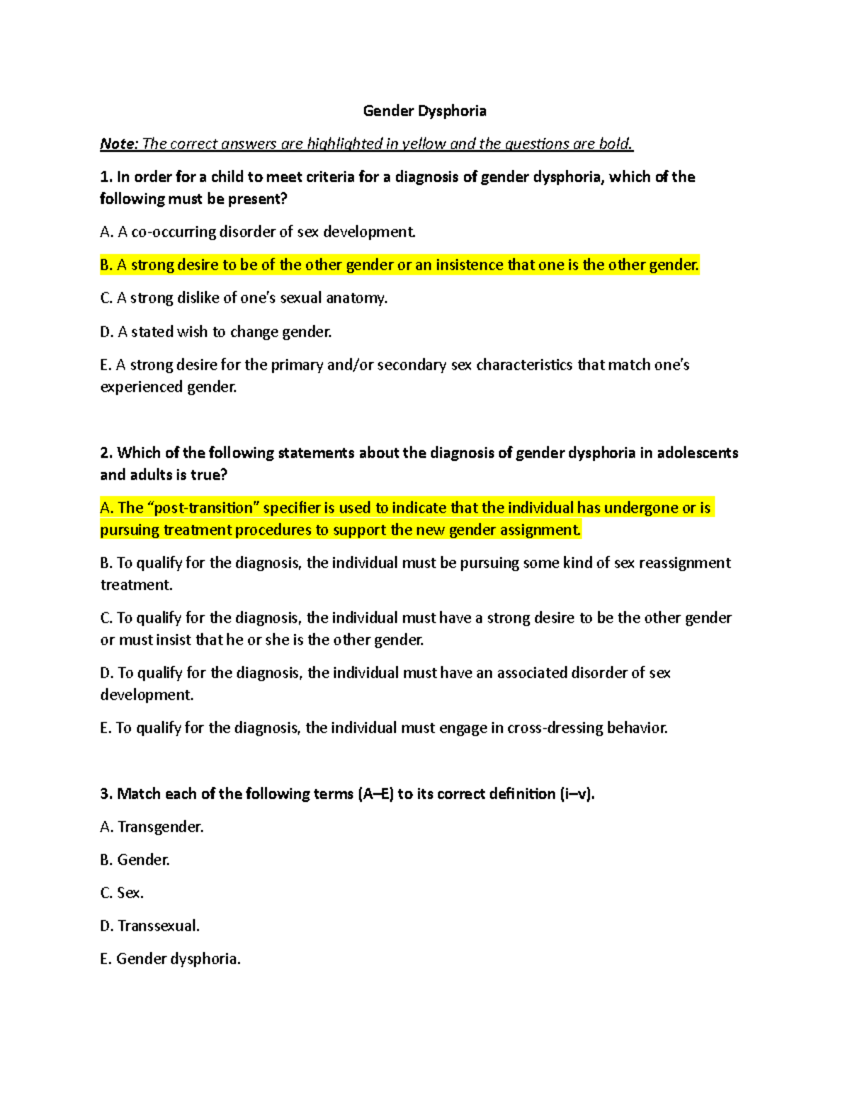 Gender Dysphoria DSM 5 Criteria Example Free PDF Download