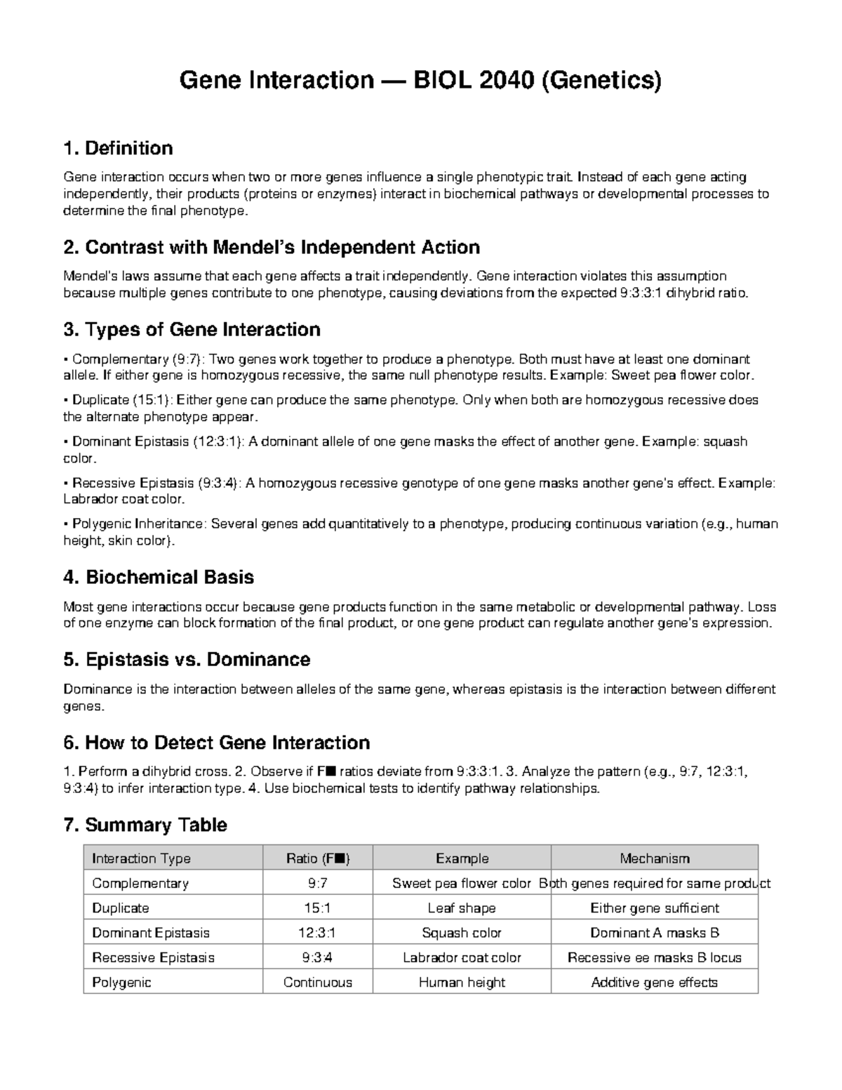 Gene Interaction Overview BIOL 2040 (Genetics) Studocu