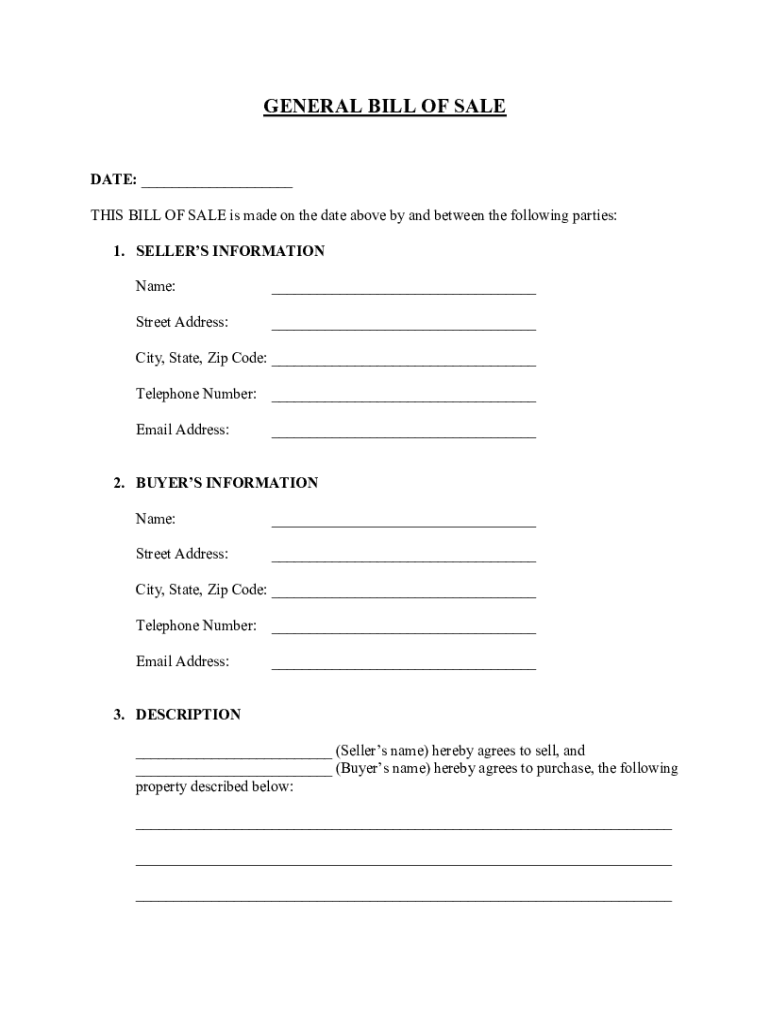 Free General Blank Bill of Sale PDF Template Word ( doc) Form PDF