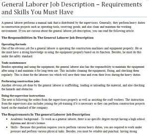 Here are some of the images for General Labor Job Description Template that we found in our website database.