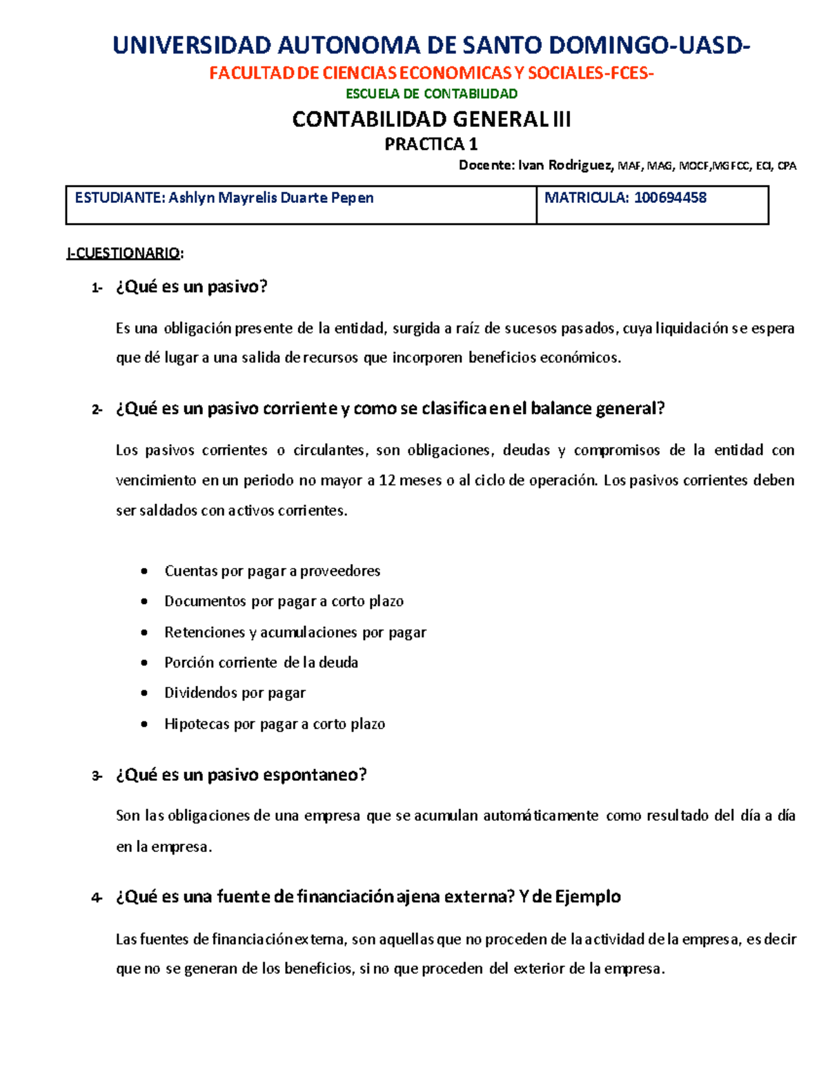 Práctica 1: Pasivos y Contabilidad General UC 100694458 Studocu