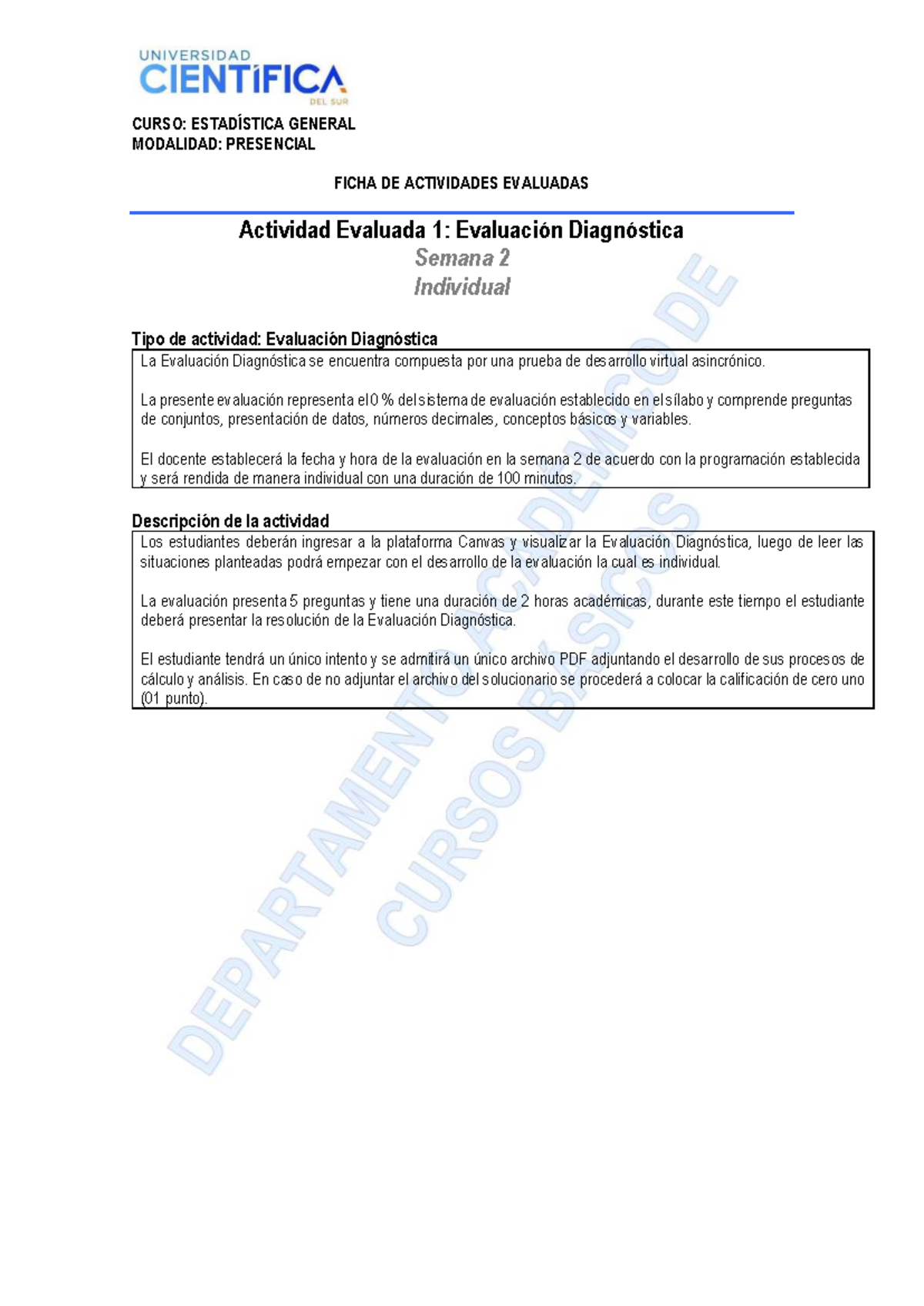 Ficha de Actividades Evaluadas Estadística General MA 300 Studocu