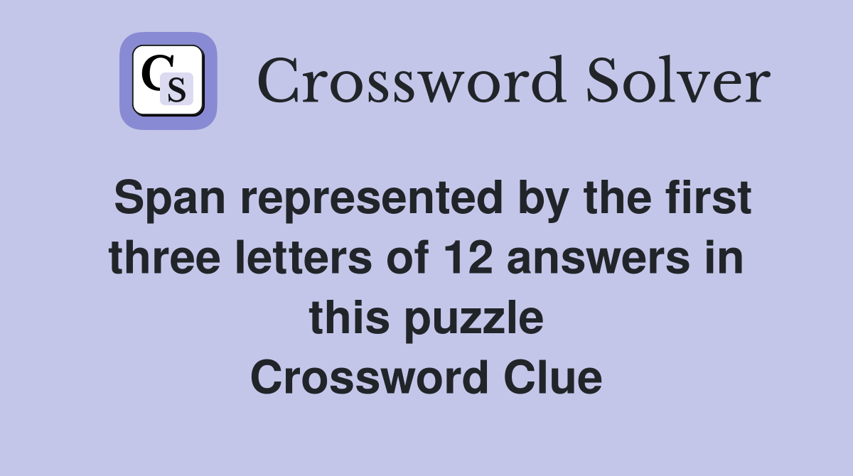 Span represented by the first three letters of 12 answers in this