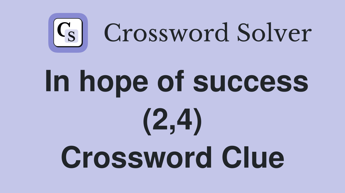 In hope of success (2 4) Crossword Clue Answers Crossword Solver