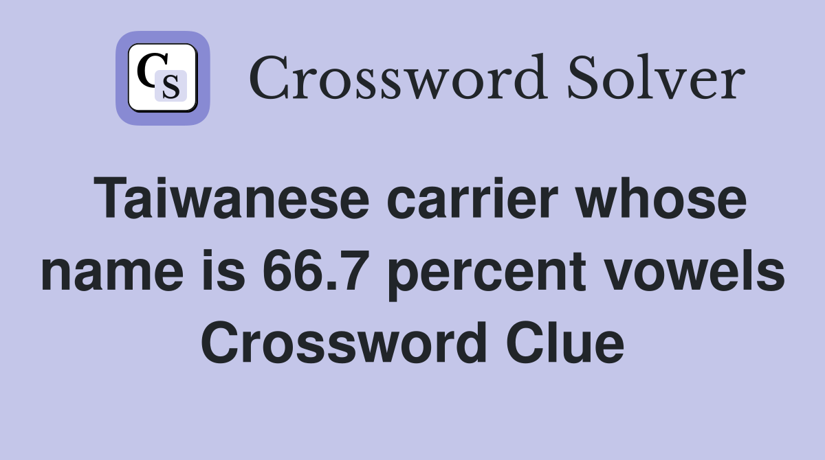 Taiwanese carrier whose name is 66 7 percent vowels Crossword Clue