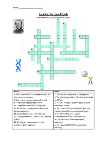 Genetics Crossword Puzzle Worksheet Activity (Printable) Teaching