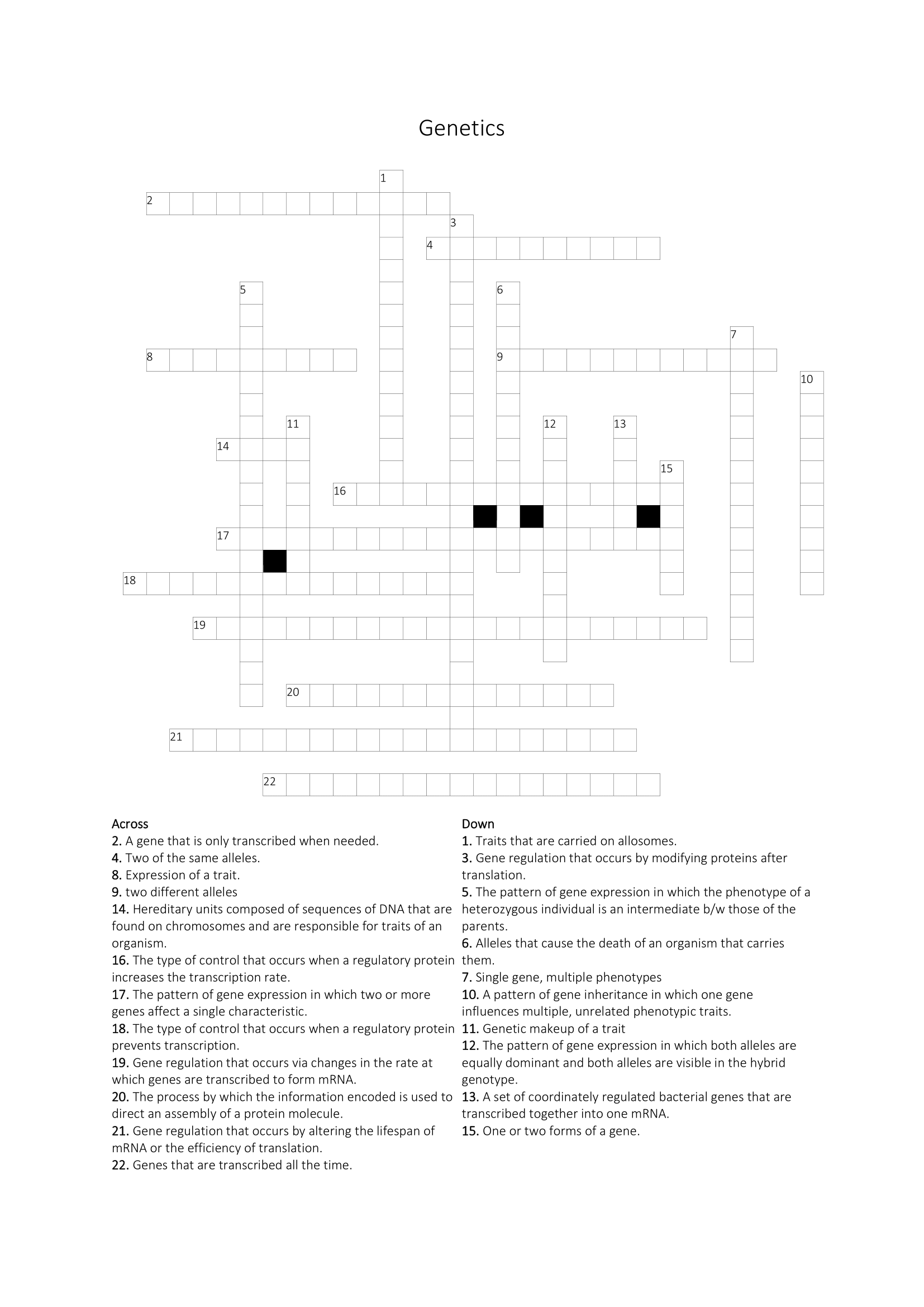 Genetics Crossword Puzzle: Key Terms Definitions